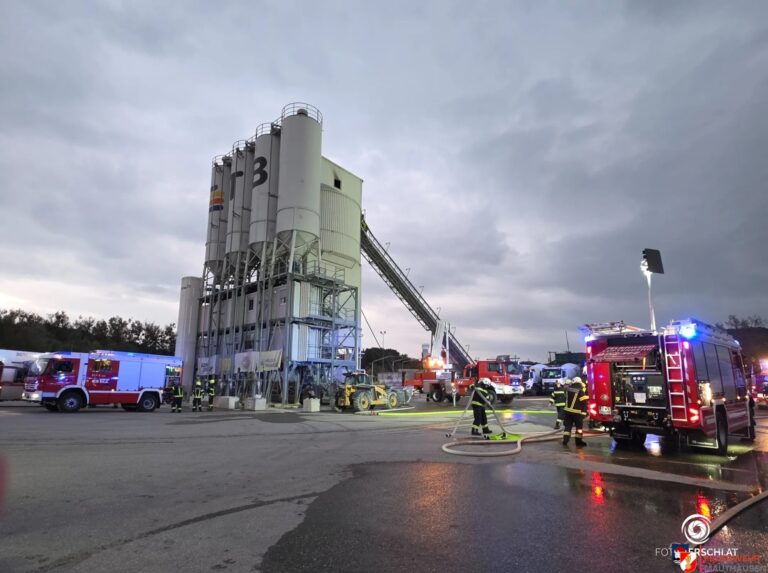 Letzte Woche, am Mittwoch, wurden wir gemeinsam mit acht weiteren Feuerwehren zu einem Brand einer Baumaschine auf das Betriebsgelände der Welser Kieswerke Treul GmbH alarmiert. Mit unserem Hubrettungsfahrzeug galt es, den Brandverlauf sowie die Temperatur dieses schwer zugänglichen Objekts zu überwachen. Quelle: fotokerschi
