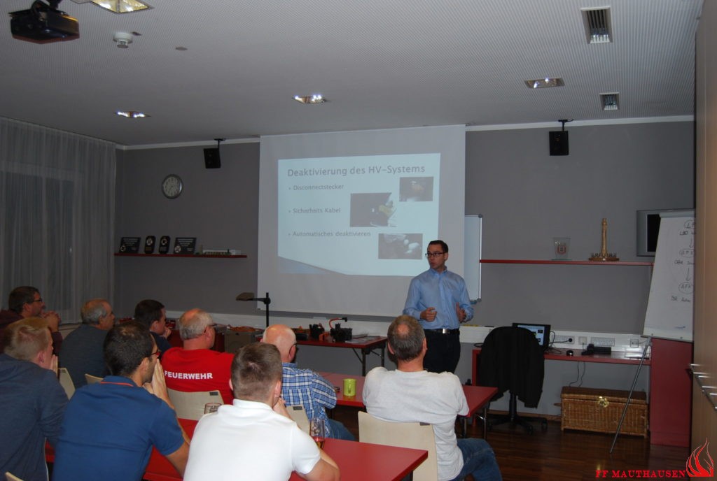 Der Umstieg von herkömmlichen Verbrennungsmotoren auf etwaige alternative Varianten ist bereits im Gang und wird in Zukunft immer weiter voranschreiten. Daher ist es auch für die Feuerwehr wichtig, am aktuellsten Stand zu bleiben, um bei Einsätzen richtig handeln zu können. Dazu wurden die wichtigsten Punkte, die bei Unfällen oder Bränden von Elektroautos beachtet werden müssen theoretisch, als auch praktisch an einem zur Verfügung gestellten BMW i3, behandelt.