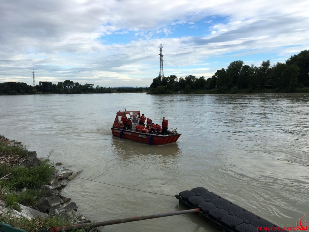 Bei der heutige Monatsübung wurden verschiedene Einsatzmöglichkeiten auf der Donau beübt. Die in zwei Gruppen geteilte Mannschaft musste jeweils drei Einsätze abarbeiten.