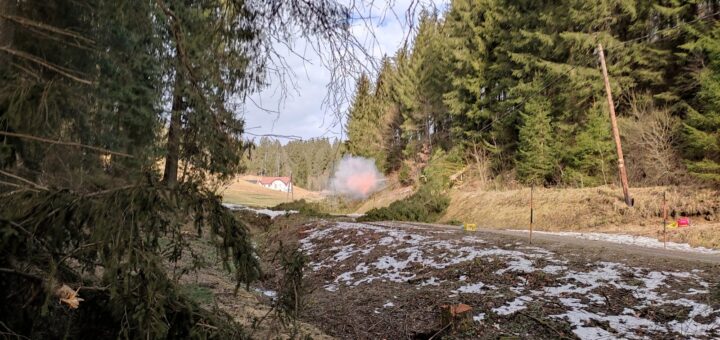 Das Sturmtief „Ylenia“ bescherte der Freiwilligen Feuerwehr Mauthausen am darauffolgenden Tag einen nicht alltäglichen Einsatz. In Pierbach stürtzten mehrere Bäume in eine Stromleitung. Aufgrund der „Verspannung“ der Stromleitung unter den Bäumen war der Einsatz einer Motorsäge zu gefährlich. Kurzerhand wurde beschlossen diese Verspannung mittels gezielter Sprengung zu lösen.