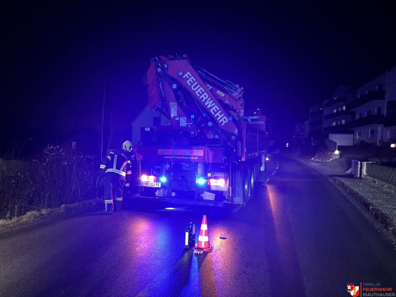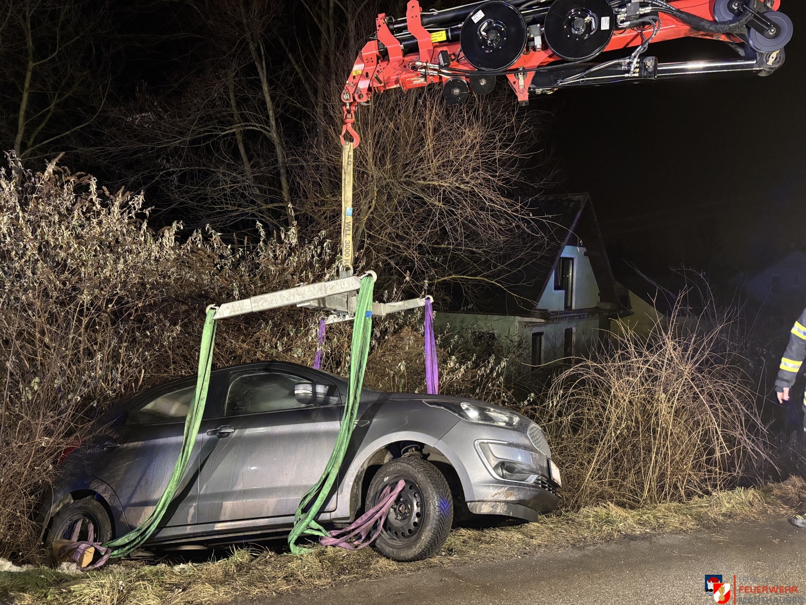 Mittels unseres Stützpunktfahrzeugs „LAST“ konnte das Fahrzeug geborgen und zurück auf die Straße gehoben werden.