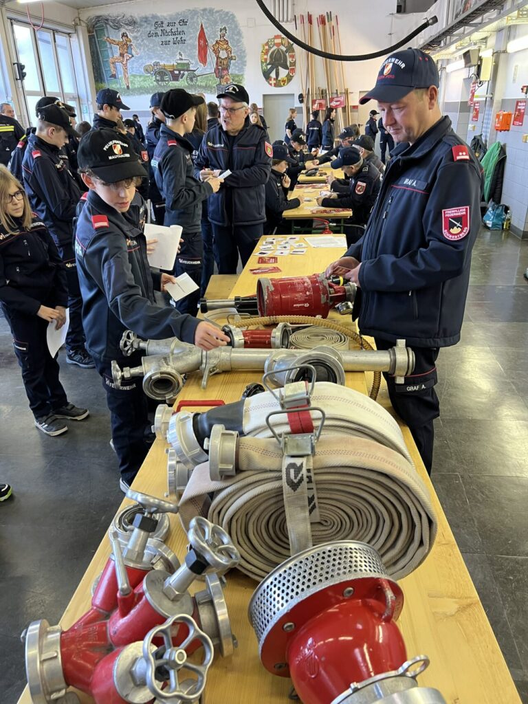 In den verschiedensten Stationen – von Allgemeinwissen, Dienstgraden und Gerätekunde über vorbeugenden Brandschutz und Erste Hilfe bis hin zu Gefährlichen Stoffen, Atem- und Körperschutz, taktischen Einheiten sowie dem Nachrichtendienst – zeigte unsere Jugend hohe Motivation und umfangreiches Fachwissen.