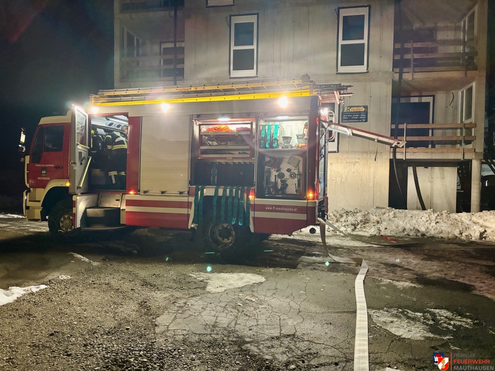 Der zweite Teil der Übung widmete sich schwerpunktmäßig der richtigen Belüftung. Dabei trainierte die Mannschaft den gezielten Einsatz von Überdruckbelüftern, das Setzen von Strömungswegen und das effiziente Ableiten von Rauch aus betroffenen Bereichen. So konnten die Abläufe zur schnellen Entrauchung und zur Verbesserung der Sichtverhältnisse gefestigt werden.