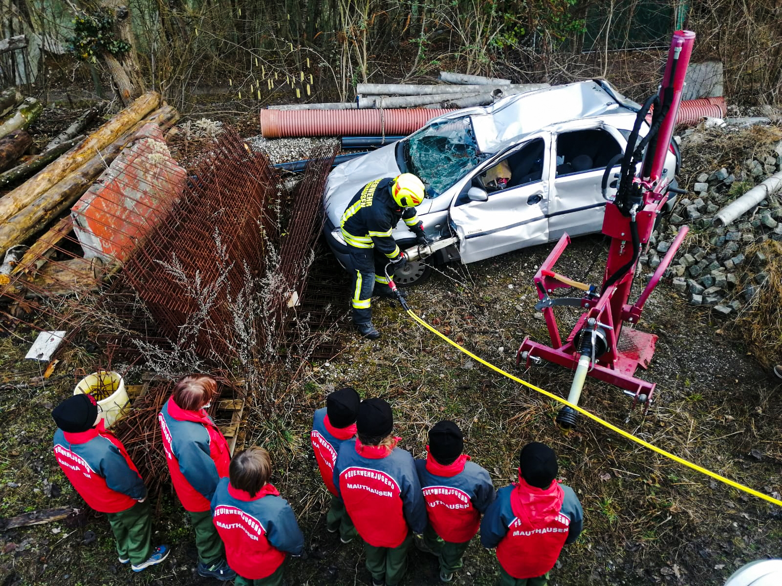 In der heutigen Jugendstunde lag der Fokus am technischen Einsatz. Nach einer Besichtigung des Pflichtbereichs konnte bei einem vorbereiteten Verkehrsunfall die Bedienung des Hydraulischen Rettungsgerätes beübt werden. Nach einer kurzen Stärkung wurde den Jungfeuerwehrmänner und -frauen das richtige Absichern einer Unfallstelle beigebracht.
