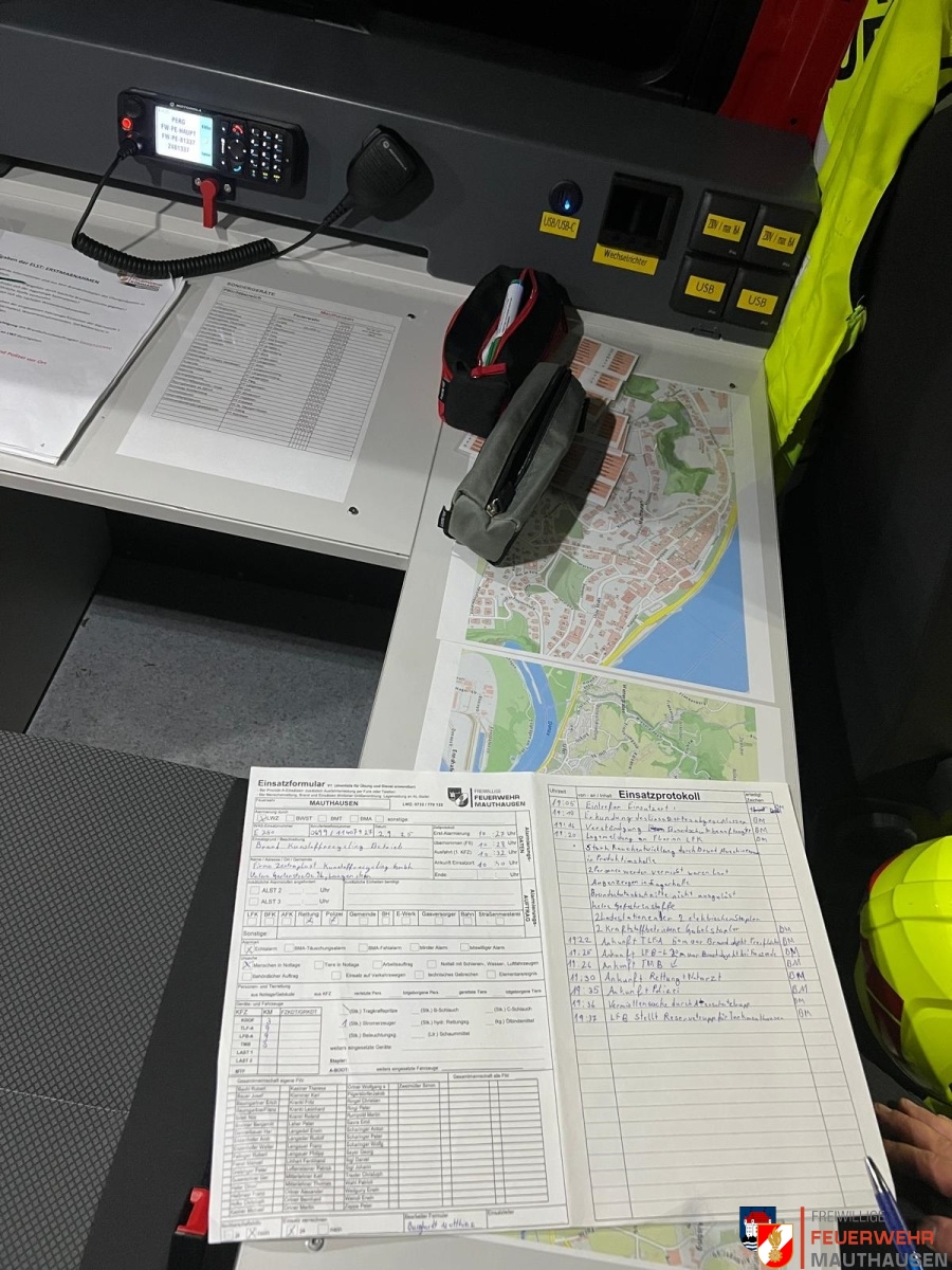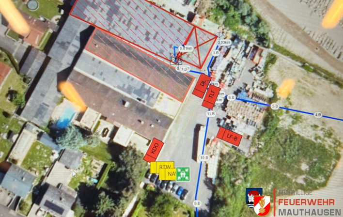 Die Übungsannahme war ein Brand im Maschinenraum eines Recyclingunternehmens mit zwei vermissten Personen. Die Kameraden hatten zuerst die Aufgabe, die Lage vor Ort zu erkunden und auf besondere Gefahren zu achten. Anschließend wurde die Lage an die Leitstelle weitergegeben und eine Einsatzleitung wurde aufgebaut. In der Einsatzleitung wurden dann Lagepläne mit dem Computer erstellt, um ein taktisches Vorgehen, wie im richtigen Einsatz, zu inszenieren. Zudem wurden Einsatzprotokolle geführt und weitere Funksprüche abgesetzt, um zum Beispiel weitere Kräfte zu alarmieren.