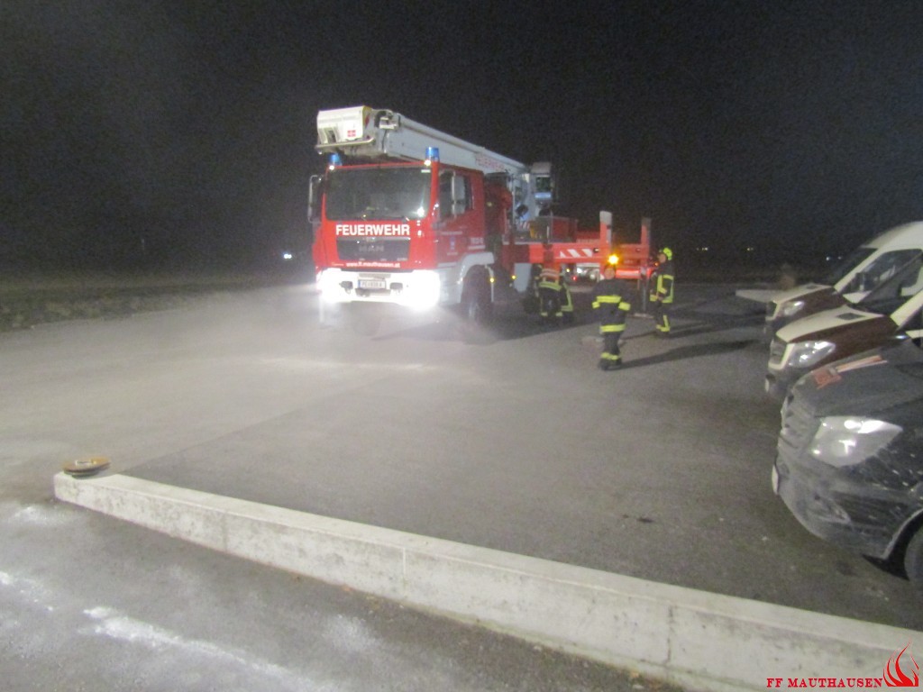 Ein in der Werkstatt ausgebrochener Brand mit zwei vermissten Personen stellte die Ausgangslage der Übung dar. Unter schwerem Atemschutz wurde ein Innenangriff zur Personenrettung gestartet. Nach erfolgreicher Brandbekämpfung wurde noch eine weitere Person, die sich auf dem Dach befand, mittels Korbschleiftrage und Hubrettungsbühne gerettet.