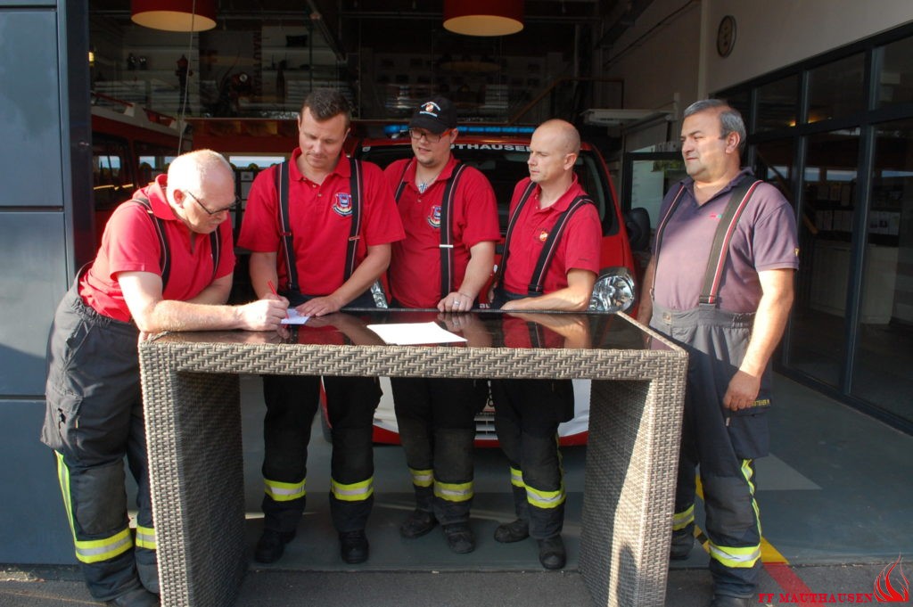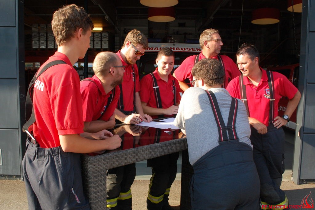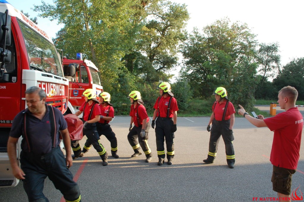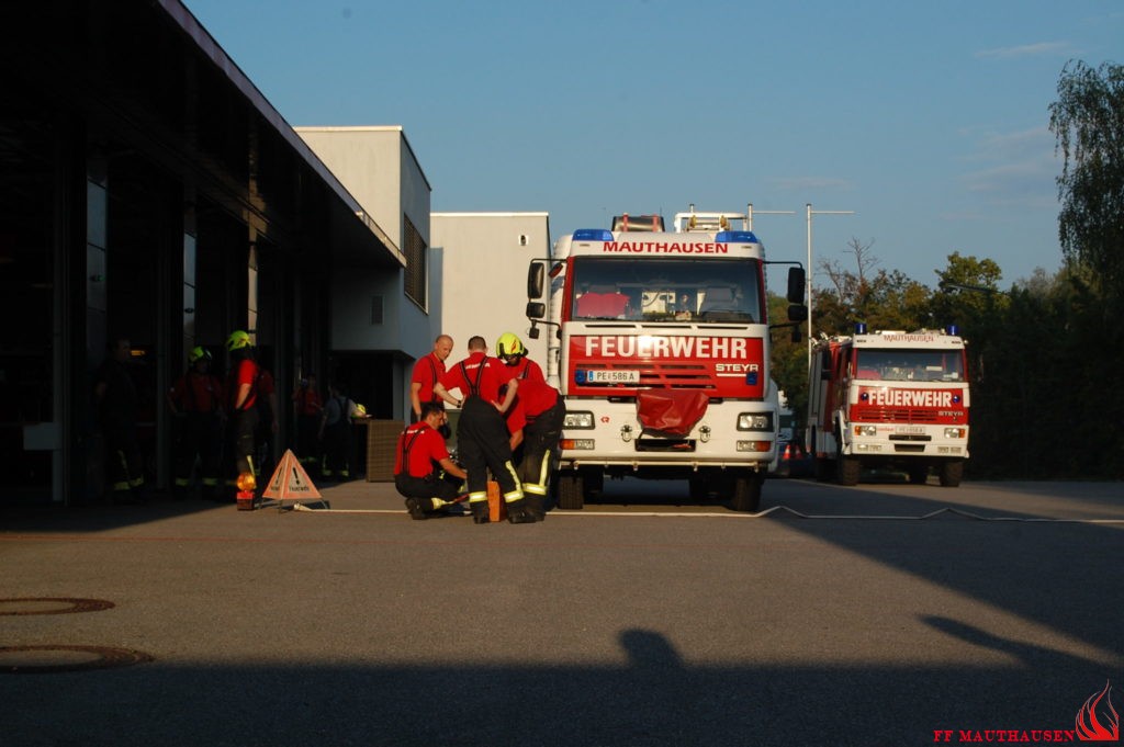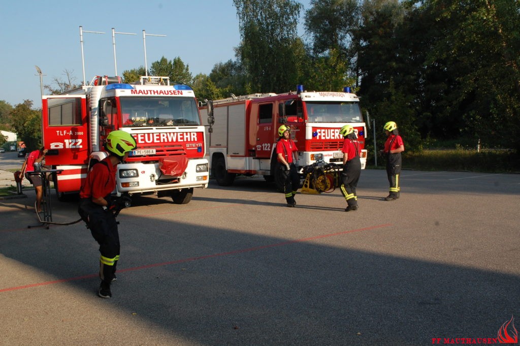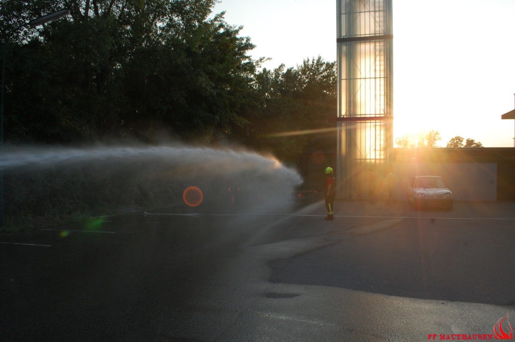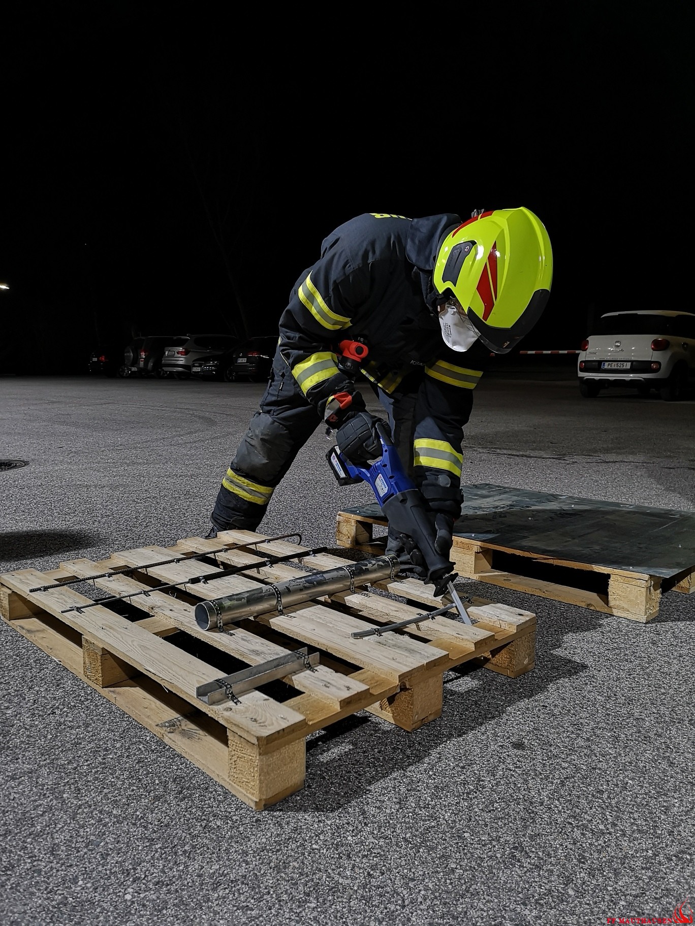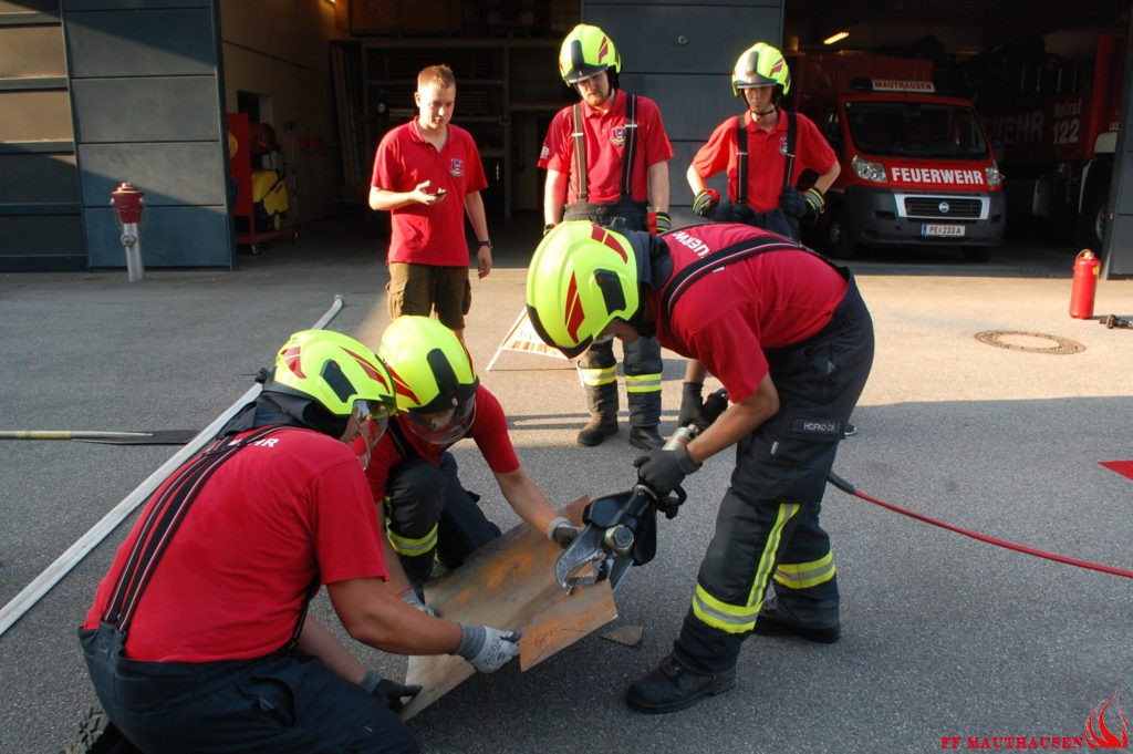 Nach einer Fragen- und THL-Karten-Runde, wurde mit den praktischen Übungen begonnen. Diese hatten die Themen Schere und Spreizer, Greifzug und Löschangriff zum Inhalt.