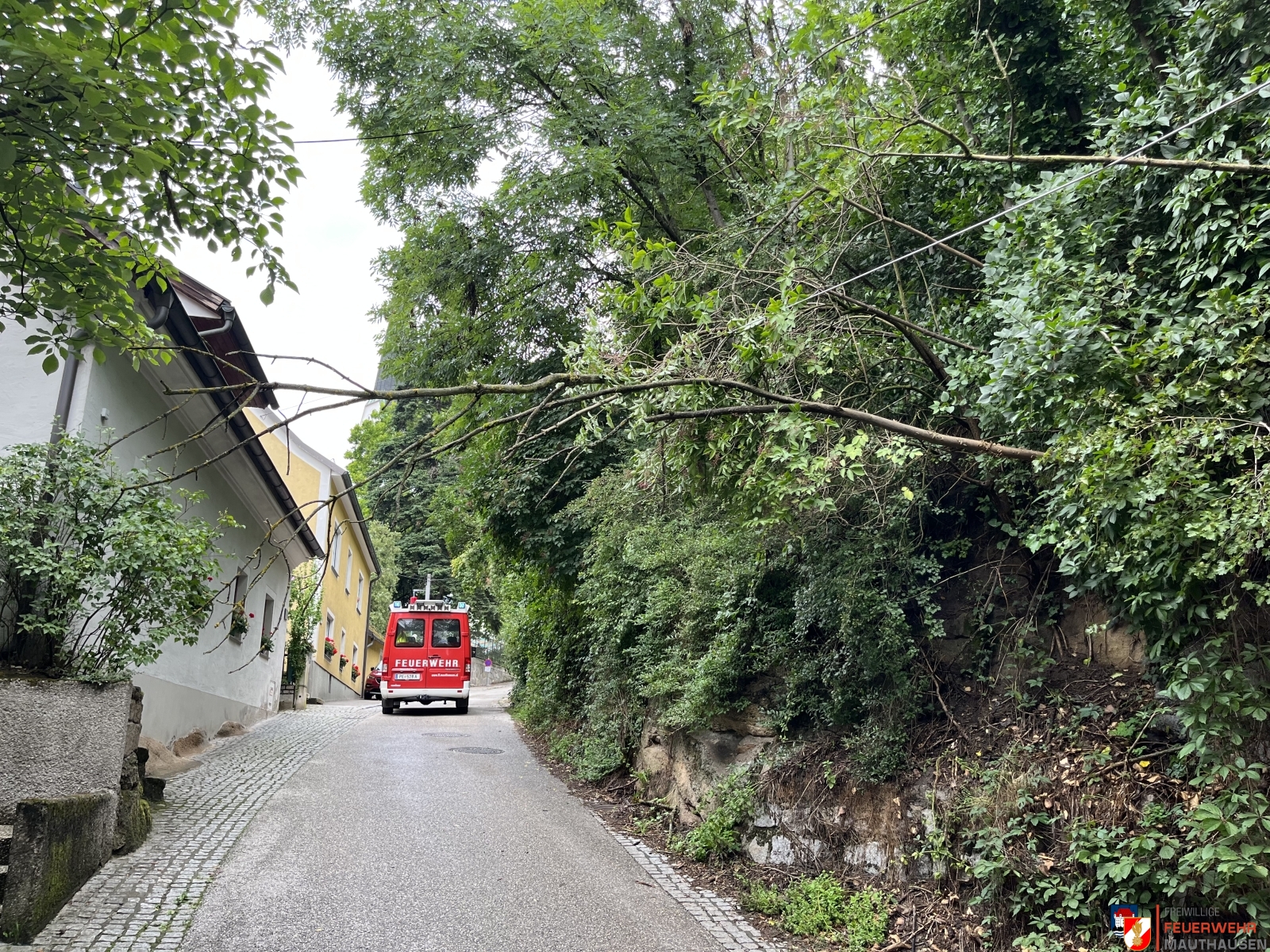 EINSATZ – Baum in Stromleitung von Manuel Frenzl · 06/08/2023 Heute um 11:48 Uhr wurden wir zum dritten Einsatz binnen zwei Tagen alarmiert. Am Kirchenberg stürzten mehrere Bäume in die dort verlaufende Stromleitung. Im schwierigen Gelände wurden die Bäume mittels Akkukettensäge entfernt.