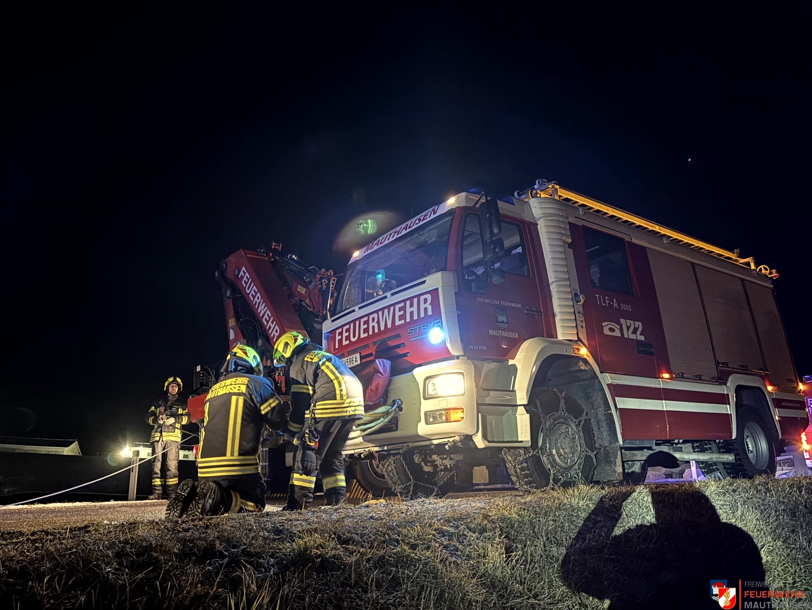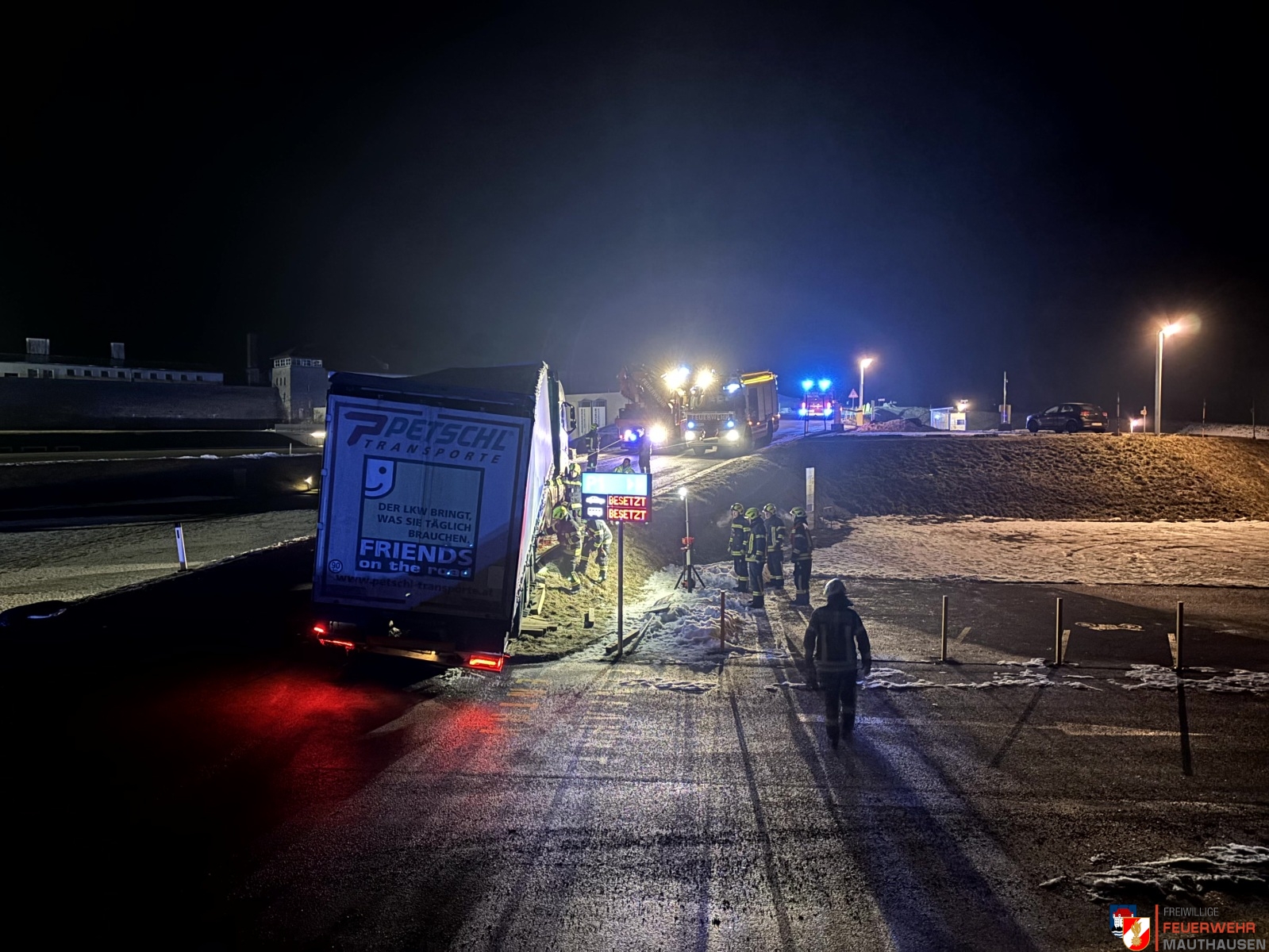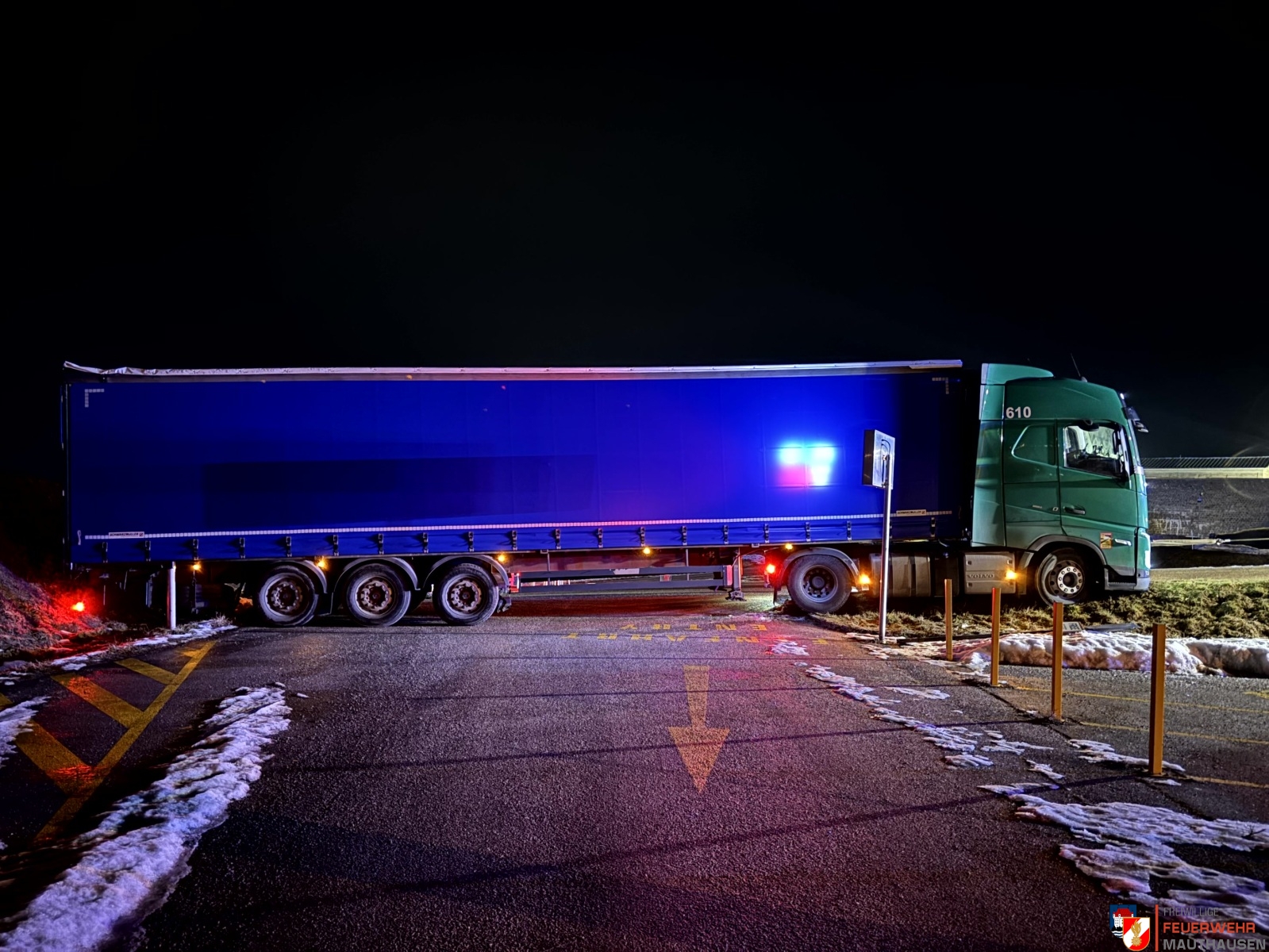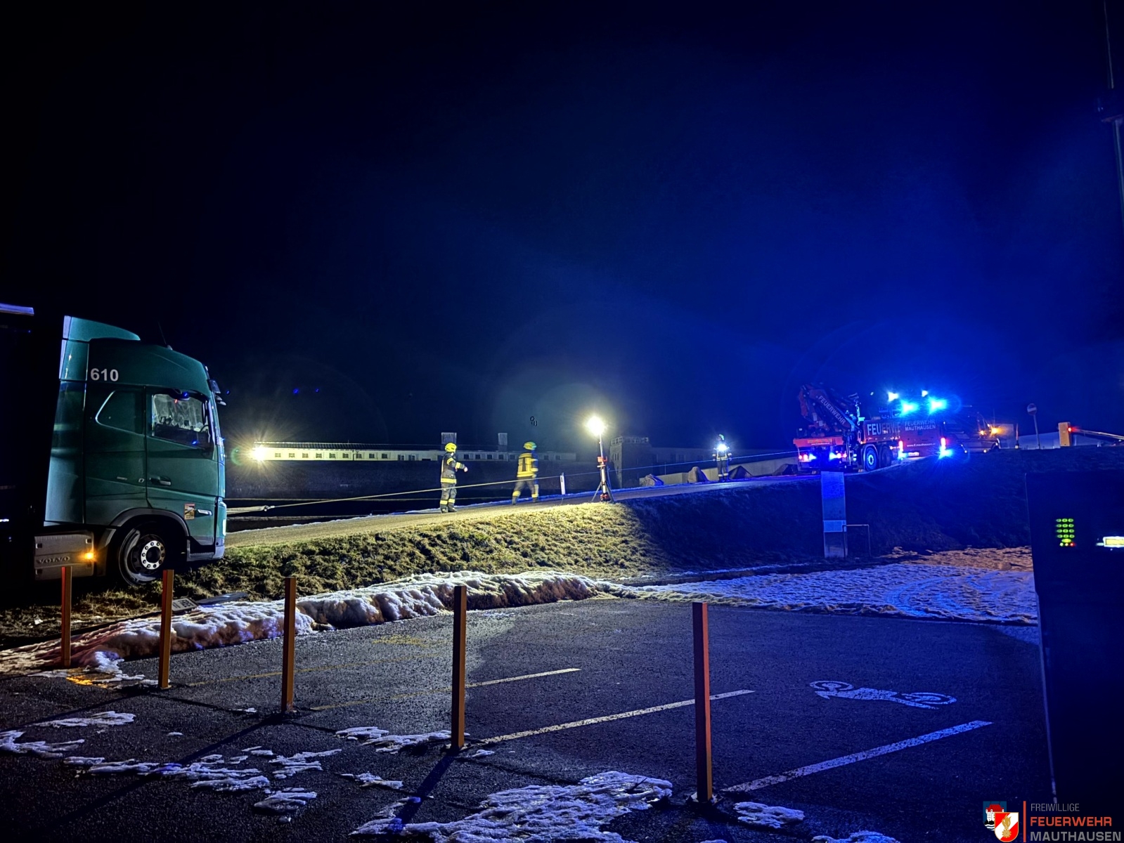 Am Dienstag um 22:15 Uhr wurde die Freiwillige Feuerwehr Mauthausen zu einem technischen Einsatz mit dem Stichwort „Bergung LKW“ alarmiert.