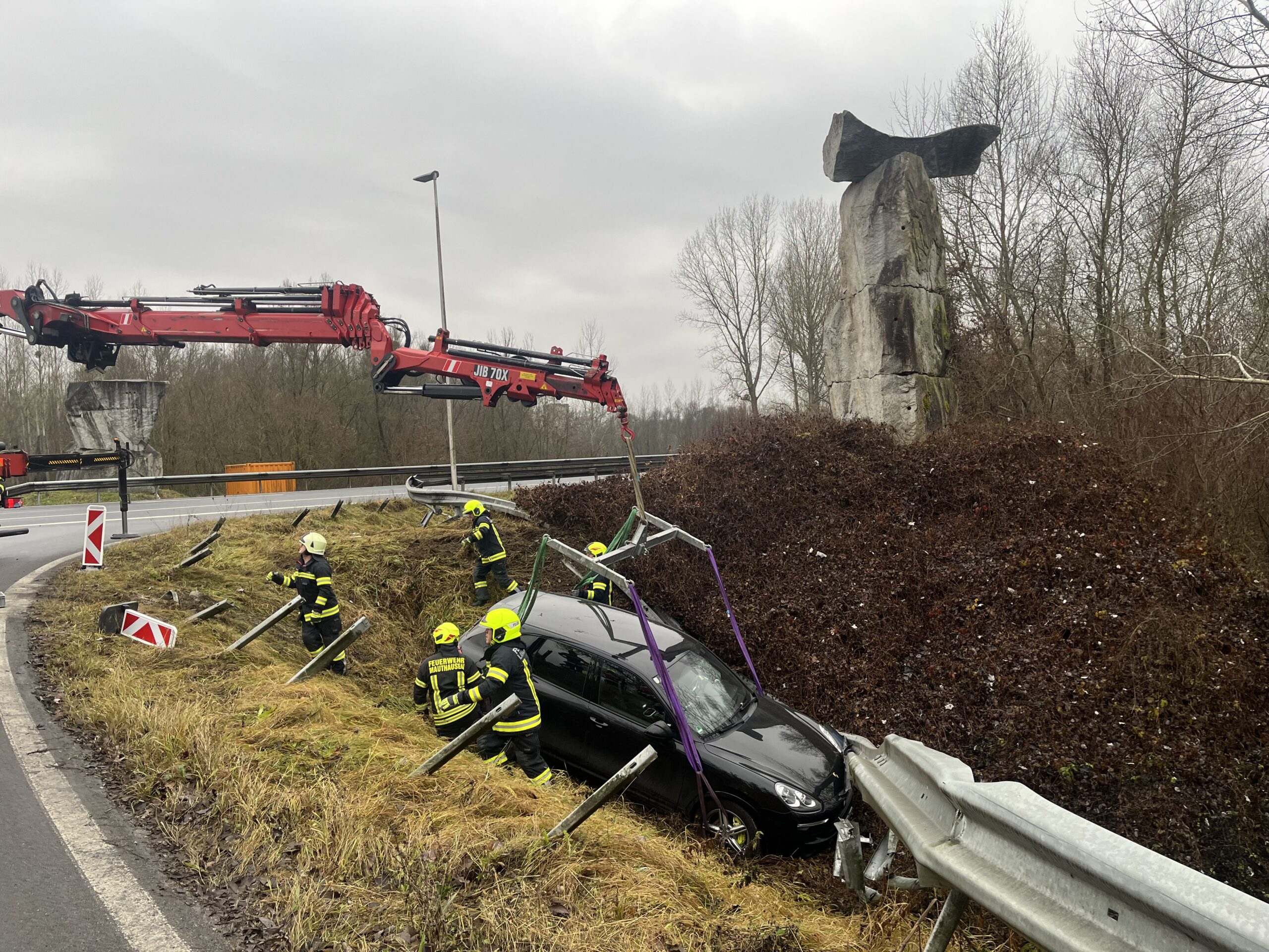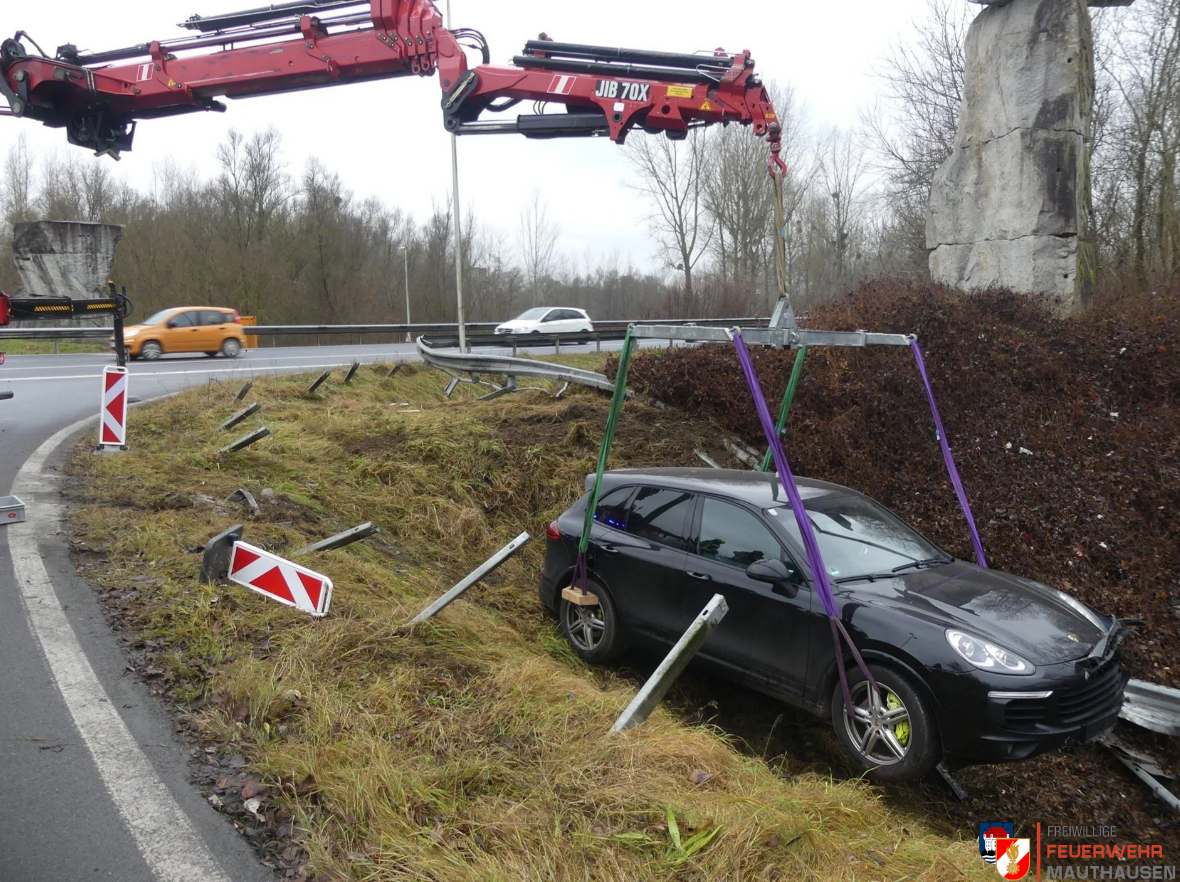 Heute um 11:43 Uhr wurde die Freiwillige Feuerwehr Mauthausen von der FF Langenstein zu einer Fahrzeugbergung am B3-Zubringer in Langenstein alarmiert. Ein PKW war nach dem Durchbrechen der Leitplanke in einem Graben zum Stillstand gekommen.