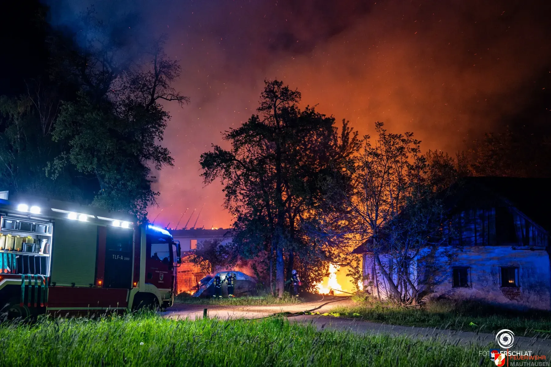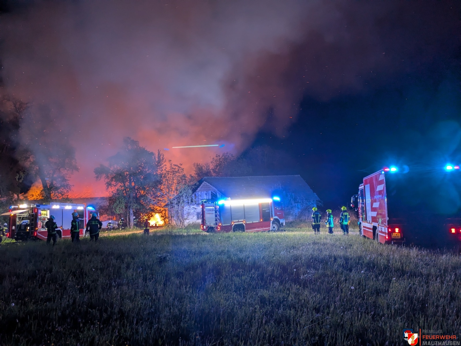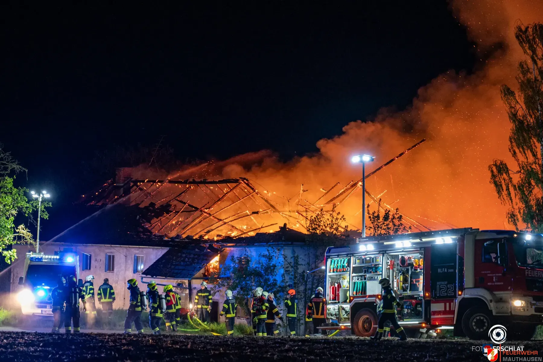 In der Nacht auf den 29. April 2026 wurde die Freiwillige Feuerwehr Mauthausen gemäß Alarmstufe 2 mit dem Großlöschfahrzeug zu einem Großbrand eines landwirtschaftlichen Objekts in der Gemeinde Katsdorf alarmiert.