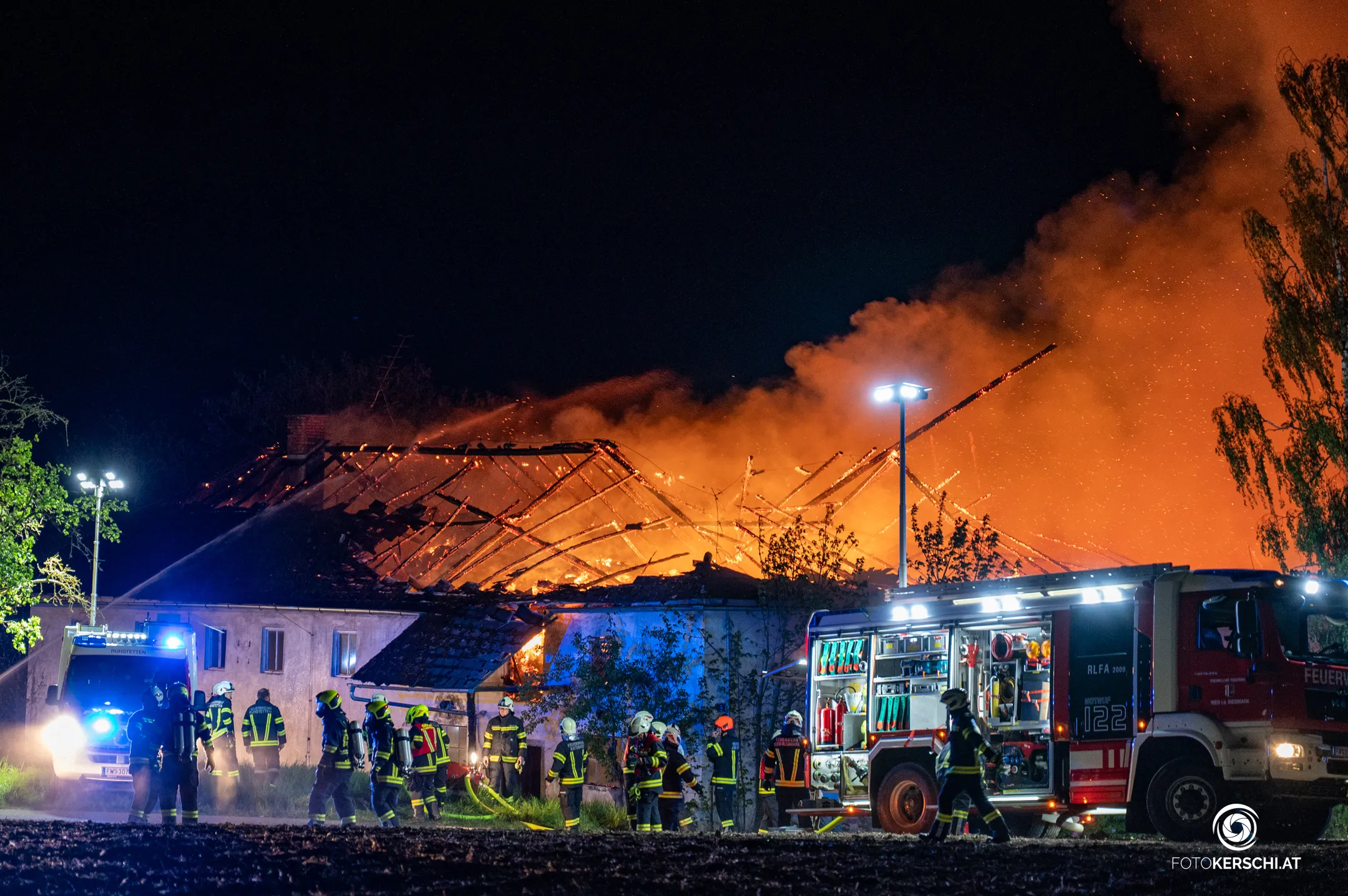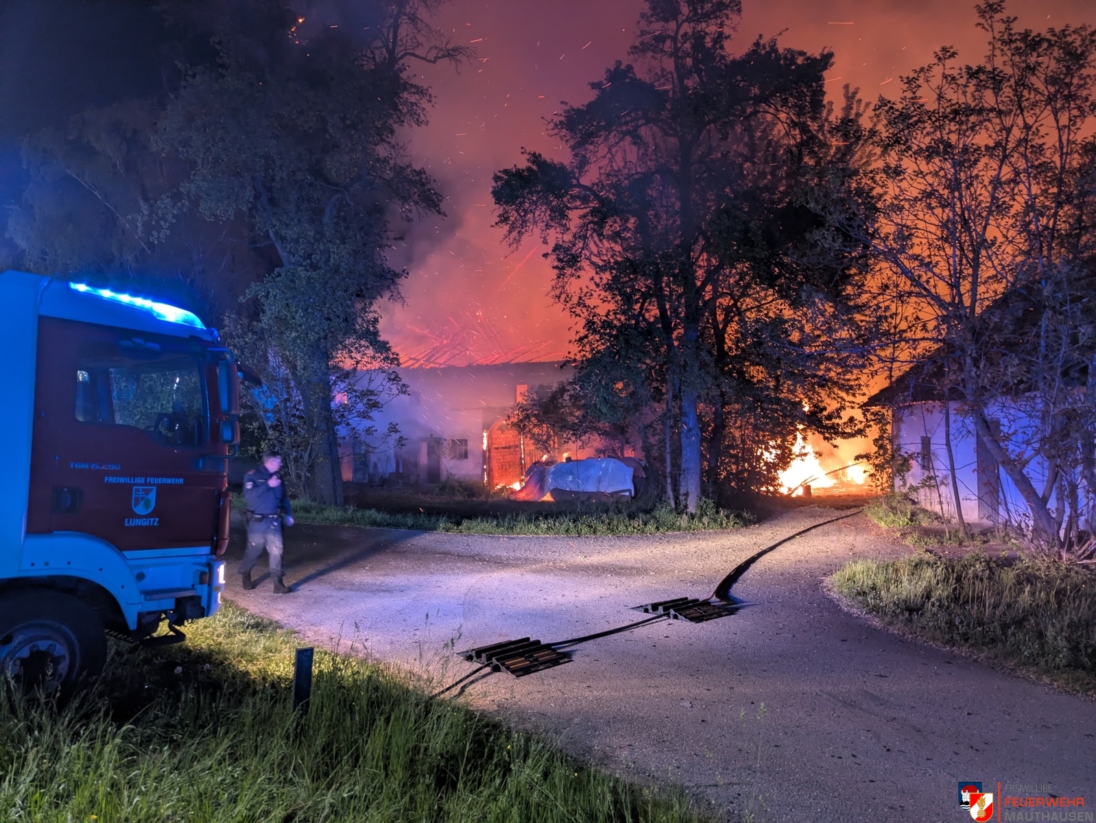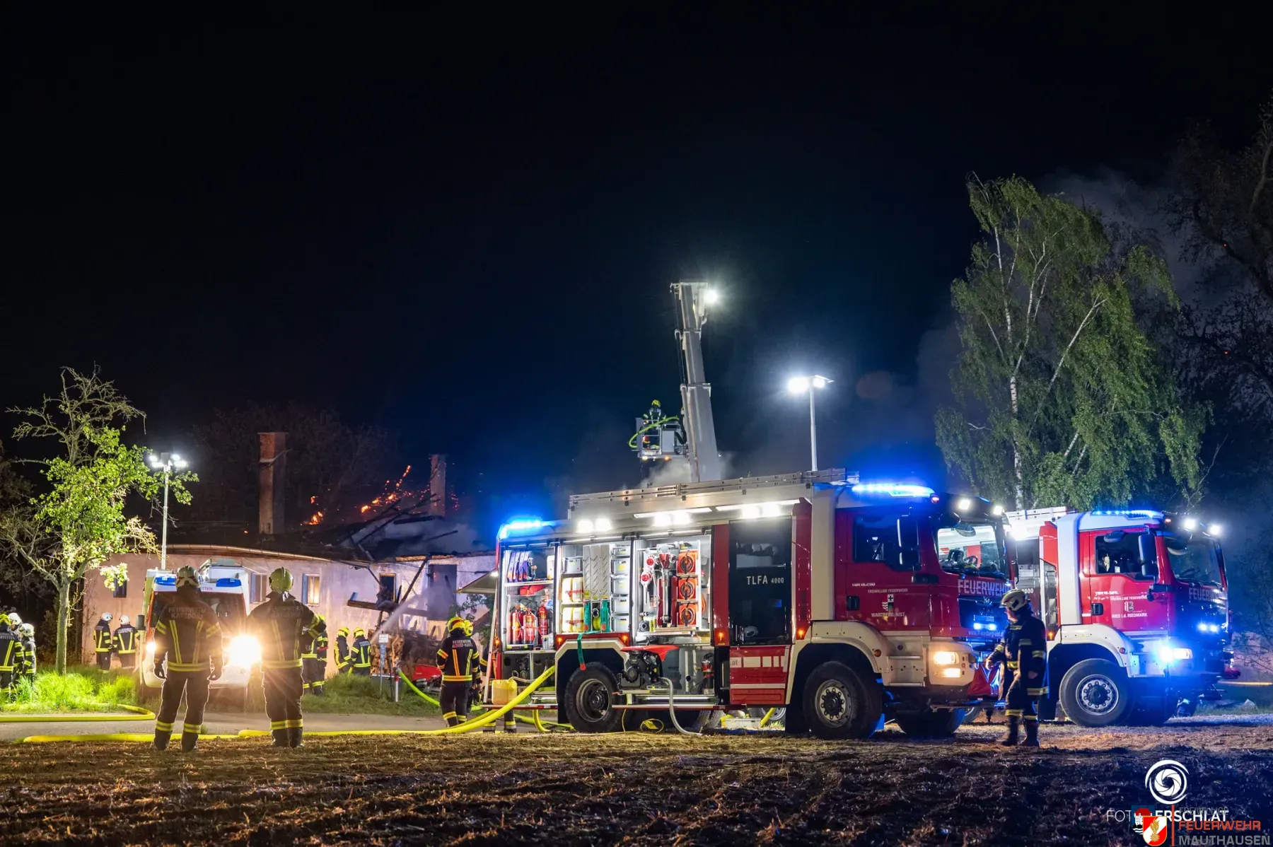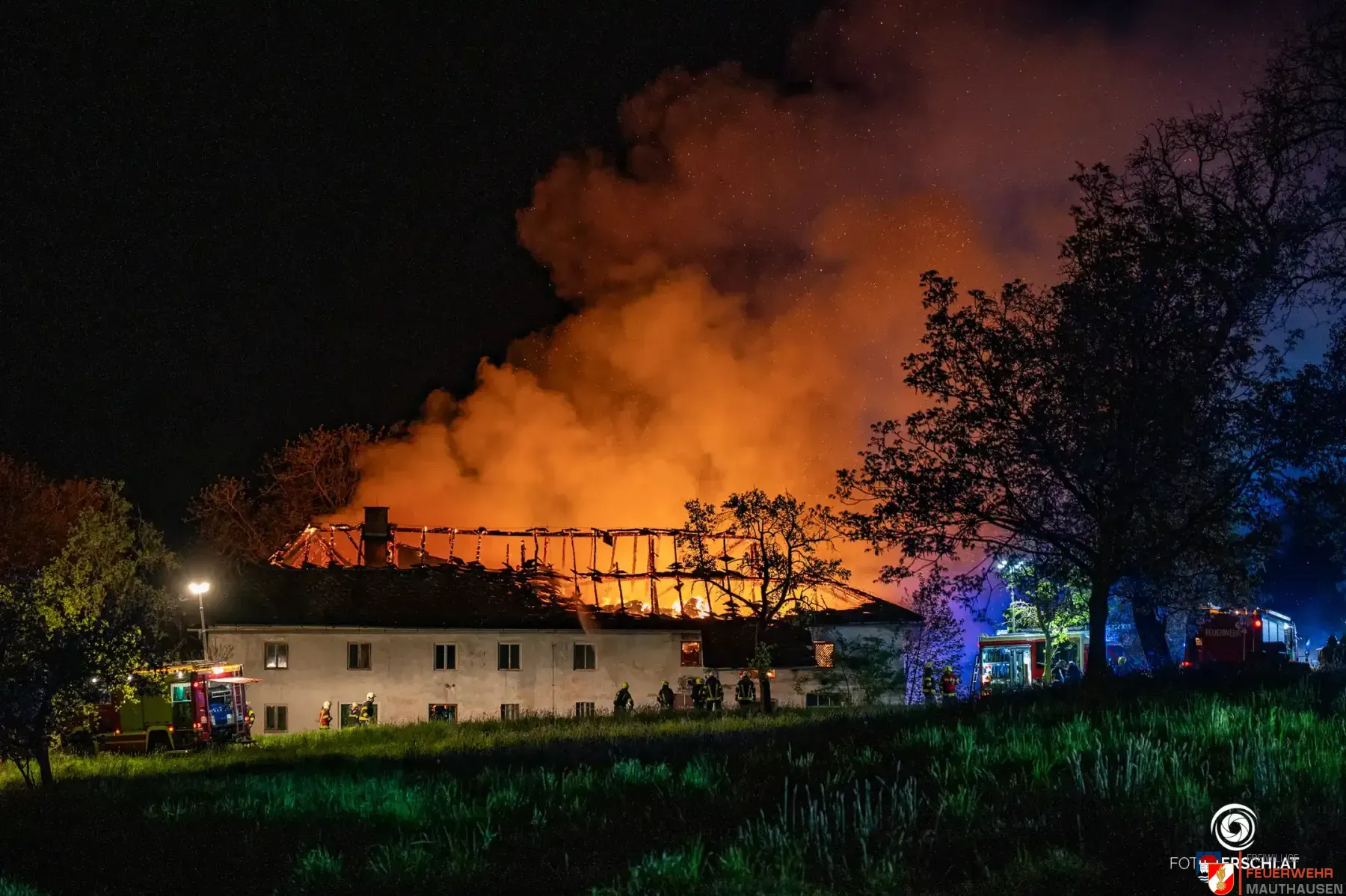 In der Nacht auf den 29. April 2026 wurde die Freiwillige Feuerwehr Mauthausen gemäß Alarmstufe 2 mit dem Großlöschfahrzeug zu einem Großbrand eines landwirtschaftlichen Objekts in der Gemeinde Katsdorf alarmiert.