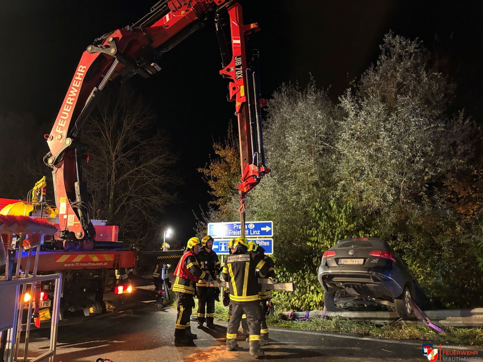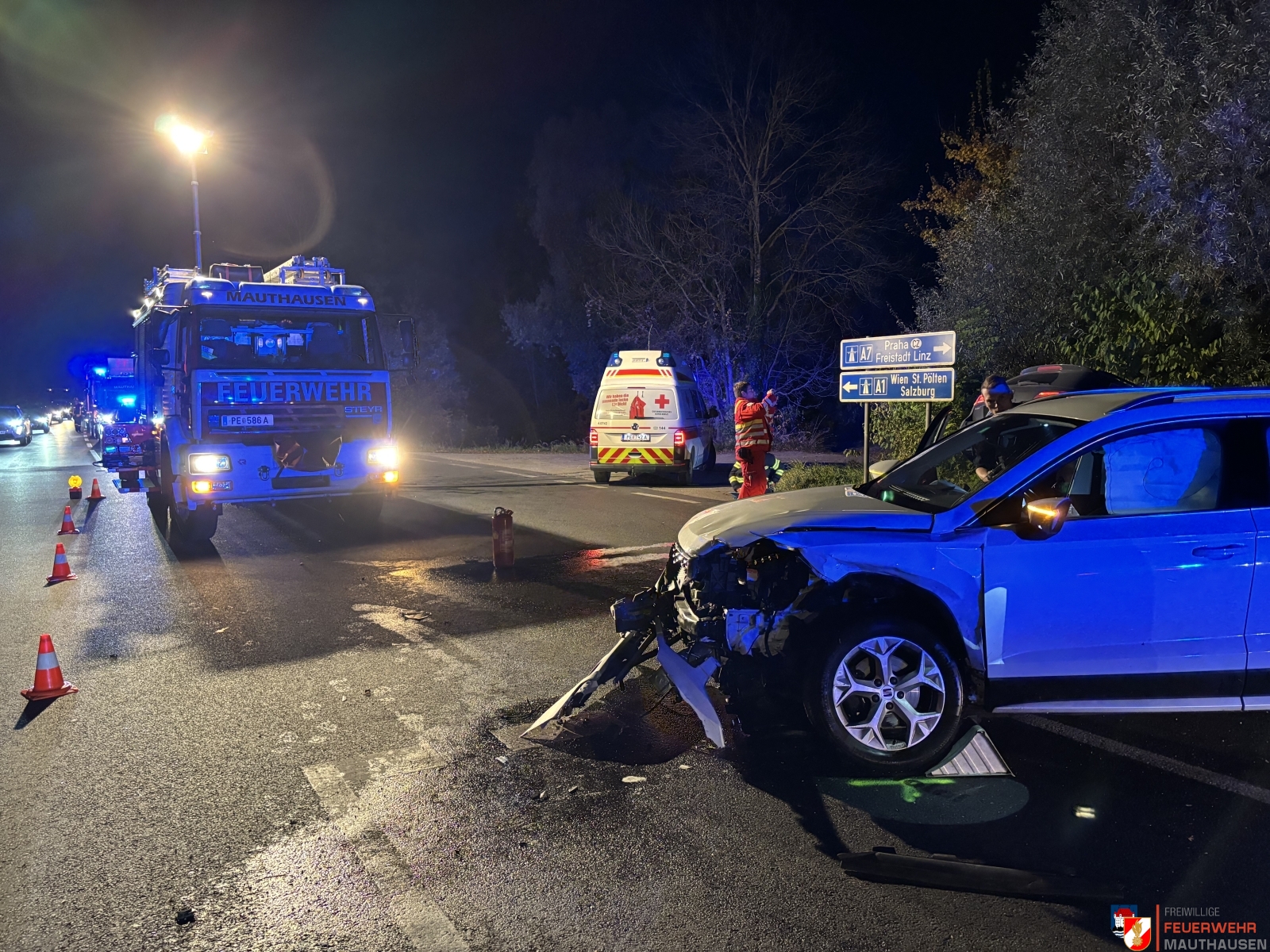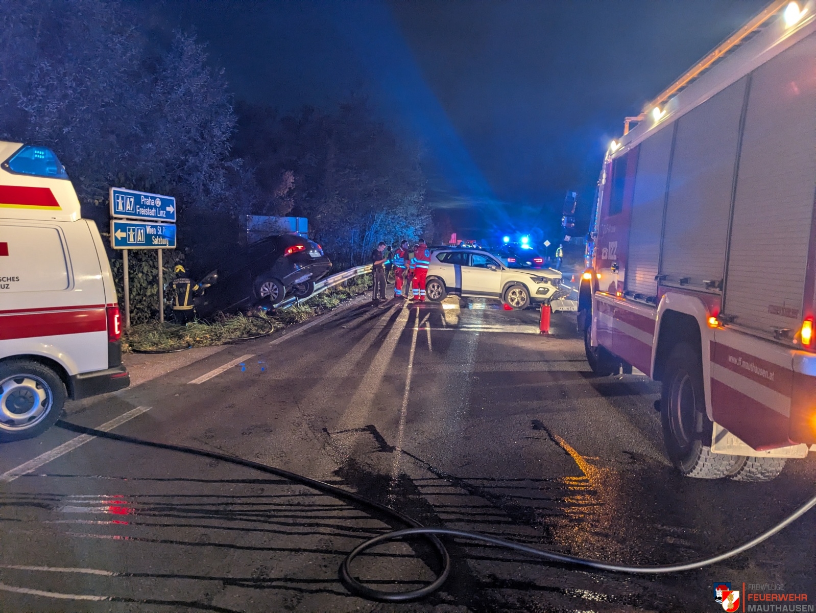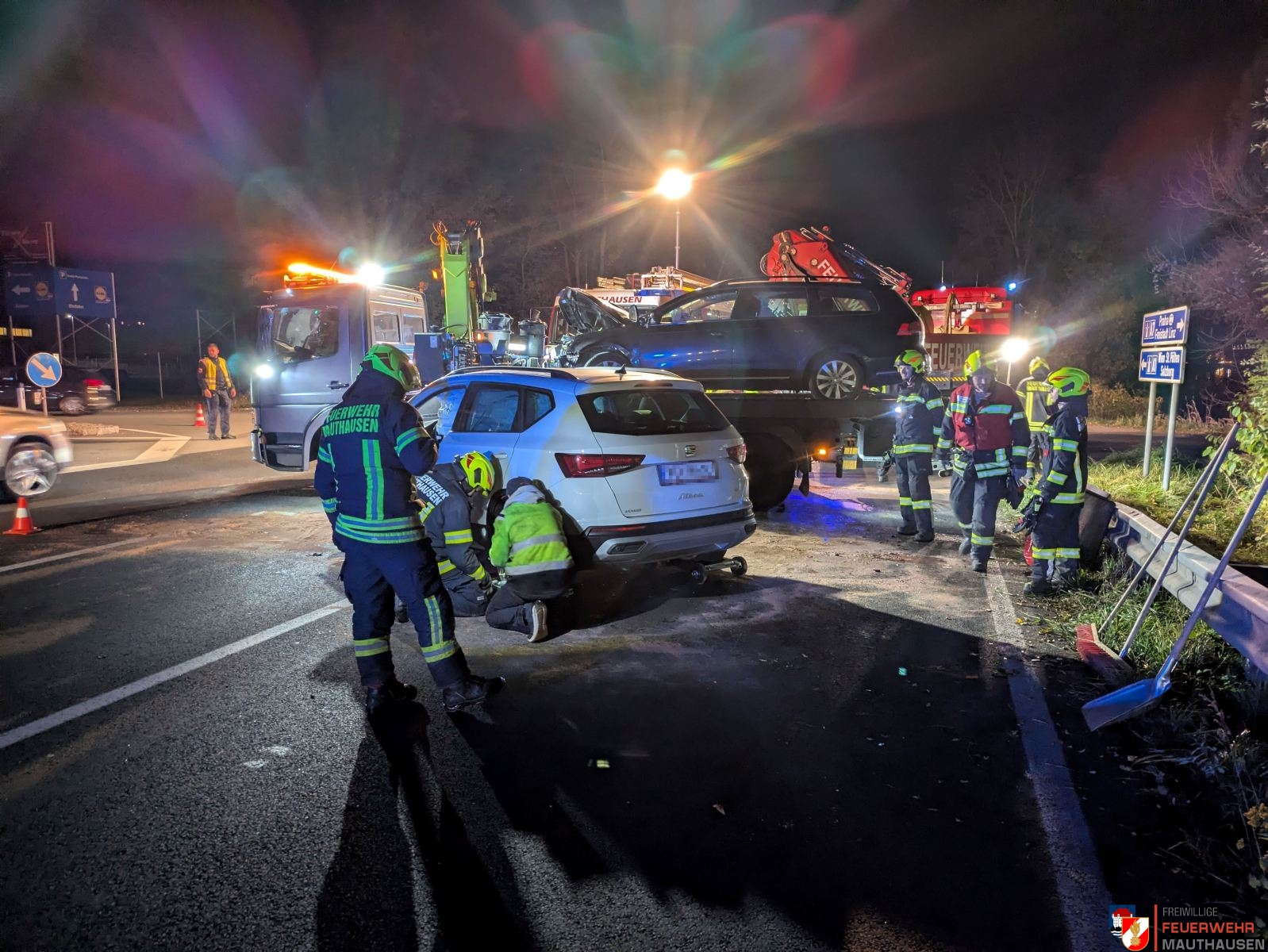 Heute um 17:30 Uhr wurde die Freiwillige Feuerwehr Mauthausen zu Aufräumarbeiten nach einem Verkehrsunfall auf der B3, Kreuzung Höhe Lidl, alarmiert. Aus bislang unbekannter Ursache kollidierten zwei Fahrzeuge, wobei eines auf der Fahrbahn zum Stillstand kam und das andere über die Leitplanke in eine Böschung rutschte. Die Aufgaben der Freiwilligen Feuerwehr Mauthausen umfassten das Absichern der Unfallstelle sowie das Binden ausgelaufener Betriebsmittel. Nach der Fahrzeugbergung mittels Kran wurden die Fahrzege einem Abschleppunternehmen übergeben. Die Einsatzkräfte konnten nach rund zwei Stunden wieder ins Feuerwehrhaus einrücken.