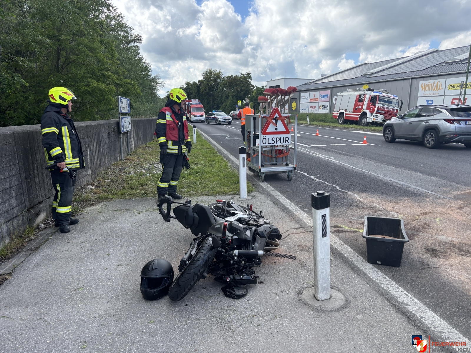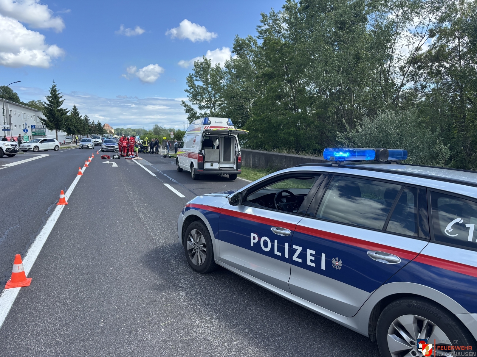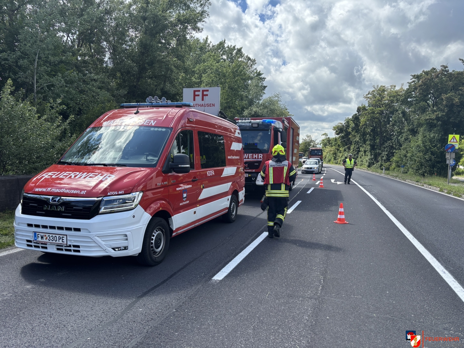 Am heutigen Nachmittag wurde die FF Mauthausen zu einem Verkehrsunfall zwischen einem PKW und einem Motorrad auf der B3 alarmiert. Die Arbeiten der FF Mauthausen beschränkten sich auf die Absicherung und die Reinigung der Unfallstelle. Der Lenker des Motorrads wurde vom Roten Kreuz versorgt.