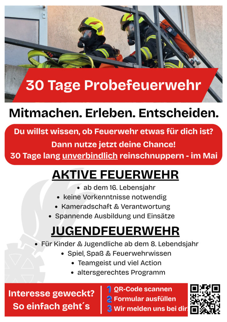 30 Tage Probefeuerwehr – Mitmachen. Erleben. Entscheiden.